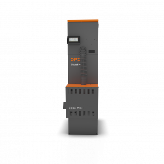 Kotol Biopel MINI vyniká malými rozmermi a vysokou účinnosťou. Zvyšuje komfort vďaka kompresorovému čisteniu a odpopolneniu.