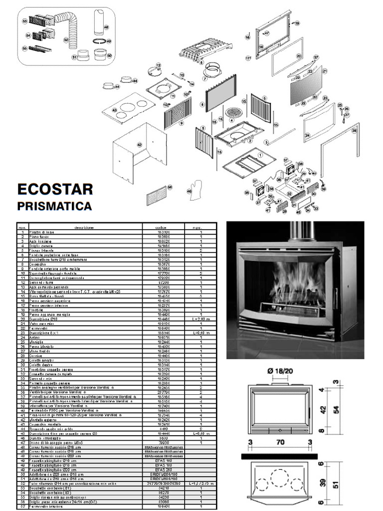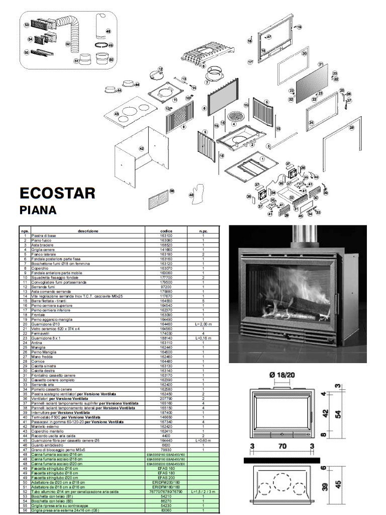 Krbová vložka na drevo Edilkamin ECOSTAR je určená na vykurovanie objektov pomocou teplého vzduchu ohrievaného medzi plášťom ohniska a druhým pláštom vložky. Výkon vložky je max. 13 kW, predaného prostredníctvom sálania cez sklo ohniska a tepelným prúdením vzduchu medzi plášťami vložky. U tejto vložky je možné časť teplého vzduchu odviesť do susednej miestnosti.
