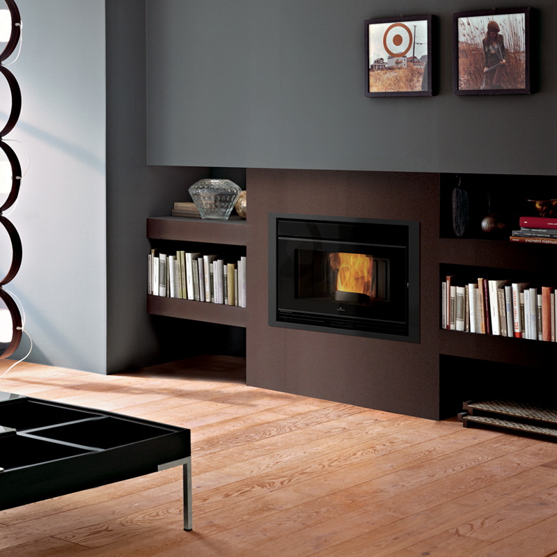 Kazetová krbová vložka na pelety Edilkamin PELLKAMIN 8 EVO s kompaktnými rozmermi je ideálna na obnovu starého krbu či realizáciu nového.