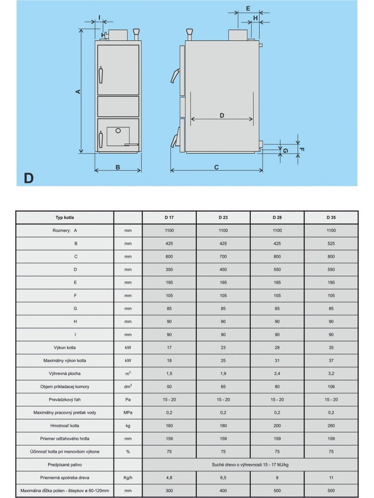 Pri použití dreva väčšieho priemeru sa zníži menovitý výkon kotla a predĺži doba horenia. Veľkou výhodou je veľká násypka paliva a prikladacie dvierka.
