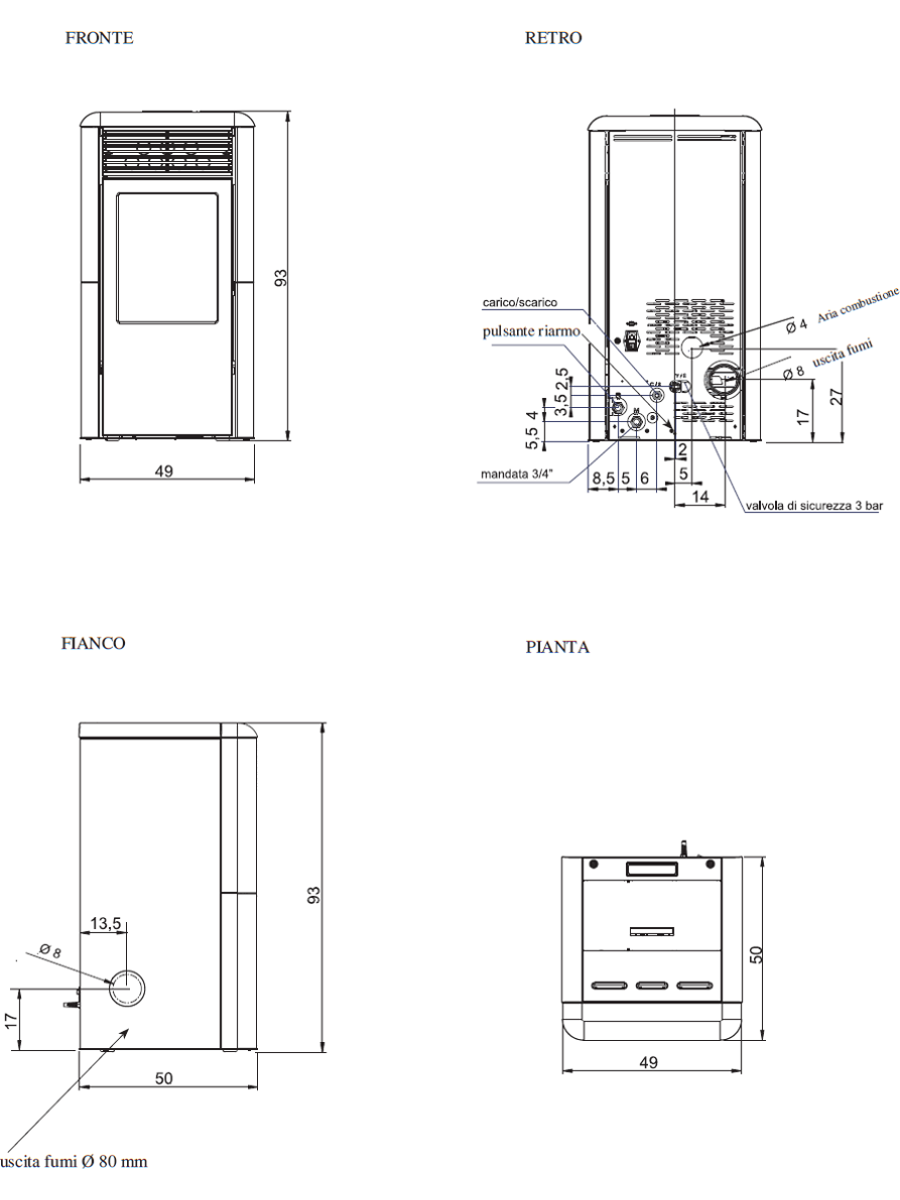 Teplovodné kachle na pelety Edilkamin IDROPOINT. Výkon 3,4 až 11,3 kW.