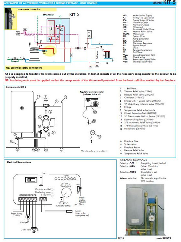 Teplovodná krbová vložka Edilkamin IDRO 50/CS - ochlazovacia smyčka a ventil - so špirálou firmy Edilkamin s napojením na radiátory, podlahové kúrenie a ohrev TUV. Dno ohniska a rošt je liatinový. Krbová vložka Edilkamin IDRO 50/CS má zabudovanú ochladzovaciu špirálu a termostatický ventil.