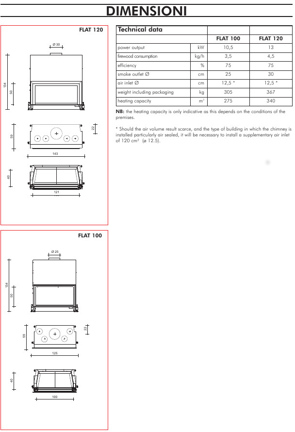 Edilkamin FLAT 120 - kompaktná krbová vložka rady Cristal nových rozmerov. Jedná sa o verziu kompaktných krbov nových dimenzií - modernejších a štýlovejších. Jeho predĺžený tvar mu dodáva výnimočný vzhľad a stáva sa jedinečným prvkom vo všetkých priestoroch. Vysoká funkčnosť a tepelný výkon zabezpečujú nepretržité teplo. Je vybavený štyrmi objímkami pre výstup teplého vzduchu, ktorý môže vyúsťovať do susedných miestností. V ponuke je k dispozícii i inštalačná sada - KIT pre nútený obeh vzduchu ventilátorom.